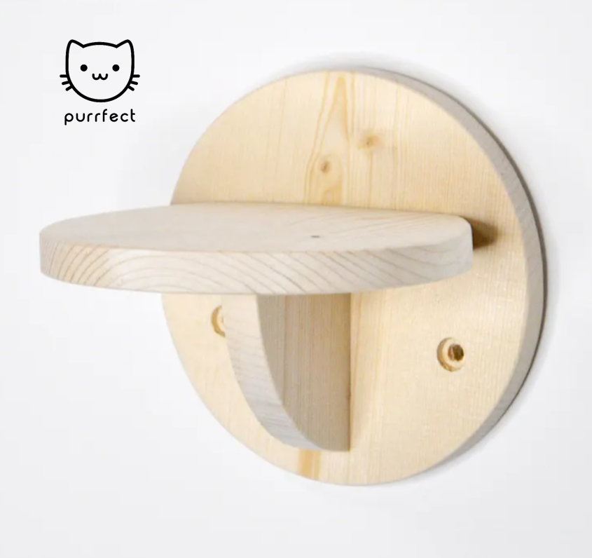 Fabricado en madera sustentable con terminación natural y curvas limpias, estas bases se pueden instalar una tras otra y generar un verdadero circuito para que tus michitos vuelen por los muros en modo parkour extremo hasta llegar a su destino en las alturas.