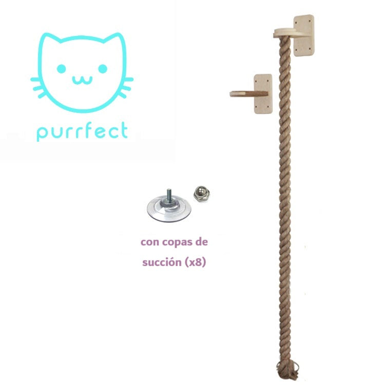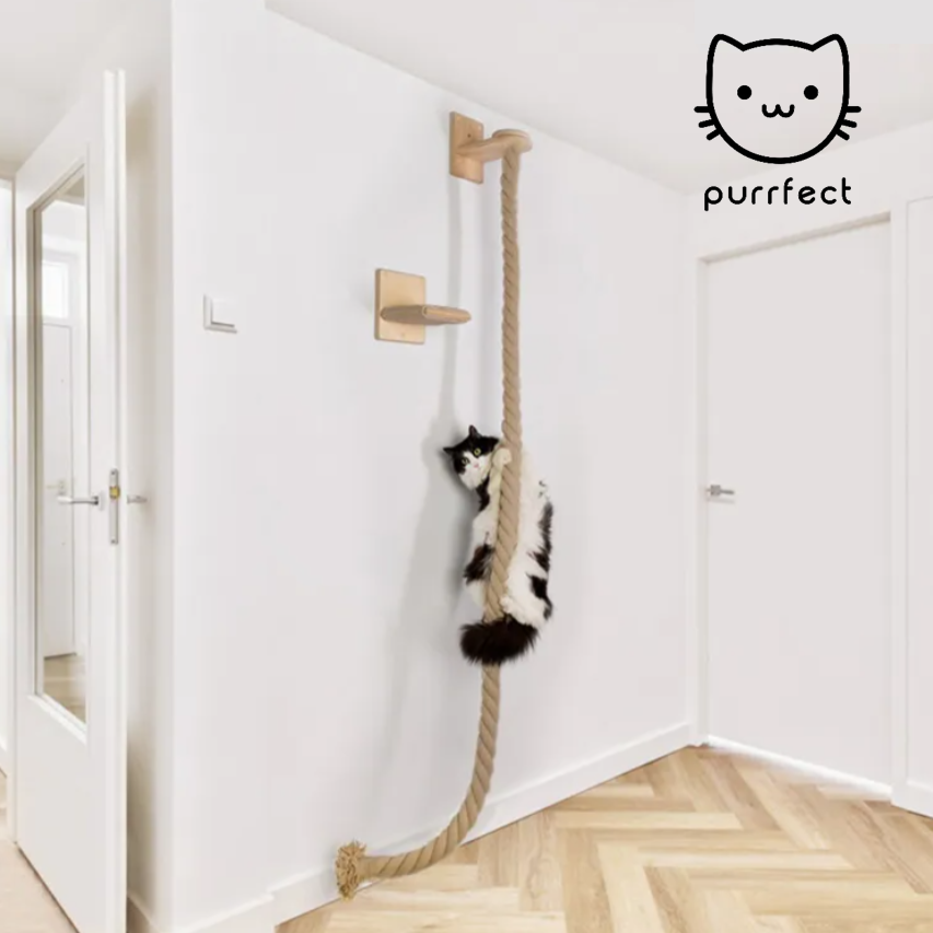 Su soporte está fabricado en madera y una gruesa cuerda de cáñamo perfecta para la escalada, o, si tiene el talento innato, para el descenso estilo bombero. Para un michi no existen imposibles.