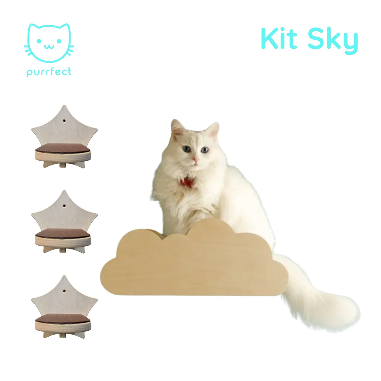 La Repisa Nube y los Escalones Estrella están fabricados en madera sustentable y cuentan con una suave alfombra marrón para mejor tracción y comodidad para tus michis! Hasta a nosotros nos da envidia.
